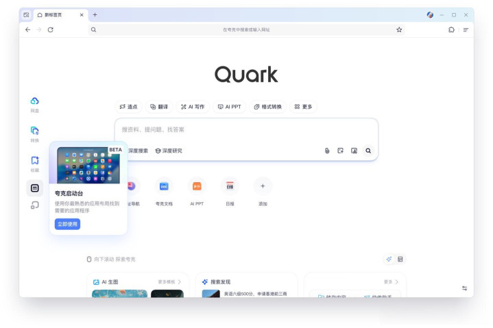 夸克这次的补位确实够快,从用户吐槽到功能上线没隔几天。实测了下,这功能入口藏在夸克主界面左下方,点一下就能把图标加到Dock栏,开启后直接导入之前系统里的app布局,分页、拖图标、建文件夹这些老操作都能用,而且不用瞎配置,更完客户端就能用。有朋友试了之后说:“跟以前的Launchpad几乎没差别,终于不用在新页面里翻来找去了。”